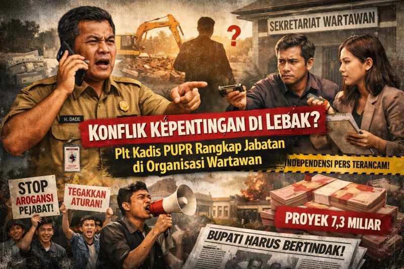 Kembali diguncang polemik serius. Dugaan konflik kepentingan yang melibatkan Plt Kepala Dinas PUPR Kabupaten Lebak, Dade Yan Apriandi, kini memasuki babak yang lebih panas. Sorotan keras datang dari Ketua BEM Universitas Setia Budhi Rangkasbitung (USR), Rizqi Ahmad Fauzi, yang menilai rangkap posisi pejabat tersebut di tubuh organisasi pers sebagai ancaman nyata bagi kebebasan dan independensi jurnalisme di Kabupaten Lebak.