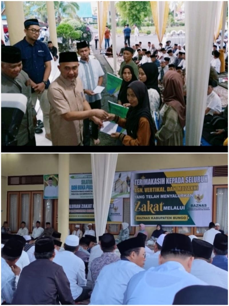 “Kegiatan ini selain untuk bersilaturahmi juga sekaligus menyampaikan zakat secara simbolis dari Baznas Kabupaten Bungo yang bersumber dari zakat para ASN di lingkungan Pemerintah Kabupaten Bungo. Zakat ini nantinya akan disalurkan kepada masyarakat yang berhak menerimanya,” ujar Bupati.
