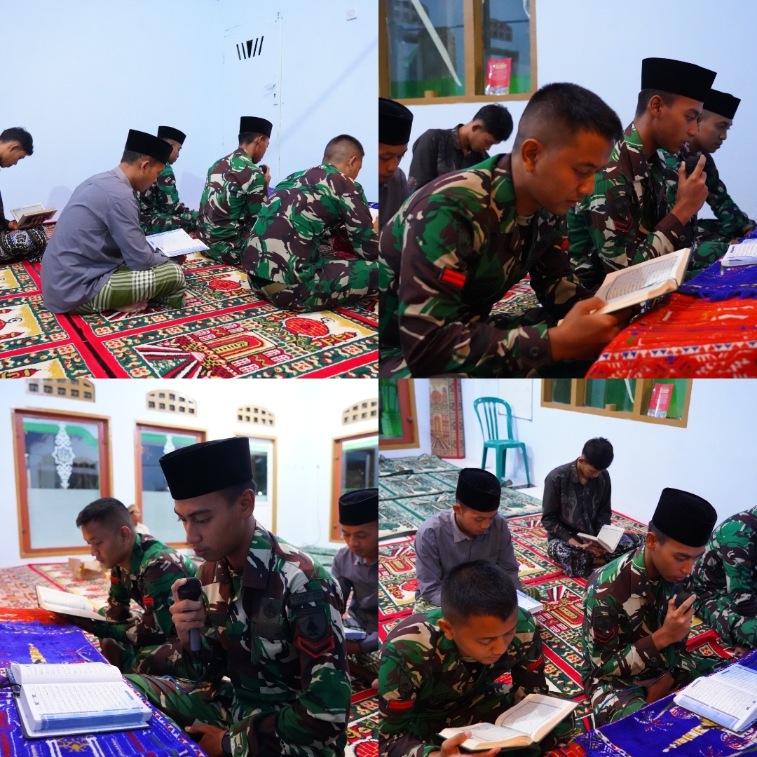 Kegiatan tadarus ini dilaksanakan sebagai bentuk peningkatan keimanan dan ketakwaan, sekaligus mempererat hubungan spiritual antara anggota Satgas TMMD dan masyarakat setempat. Suasana kebersamaan terasa hangat, mencerminkan keharmonisan antara TNI dan warga desa.