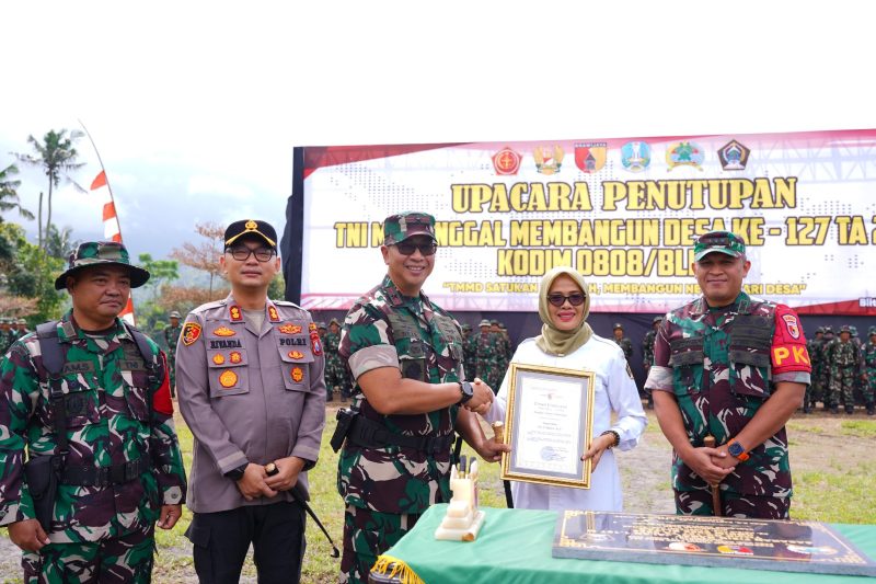 Blitar – Program TNI Manunggal Membangun Desa (TMMD) ke-127 Kodim 0808/Blitar resmi ditutup melalui upacara yang digelar di Desa Krisik, Kecamatan Gandusari, Kabupaten Blitar, Rabu (11/3/2026). Penutupan ini menandai berakhirnya kegiatan bakti TNI bersama masyarakat selama kurang lebih satu bulan dengan tema “TMMD Satukan Langkah, Membangun Negeri Dari Desa”. Dalam kegiatan tersebut juga dilakukan penyerahan hasil pembangunan fisik maupun non-fisik kepada Pemerintah Daerah untuk dimanfaatkan masyarakat.