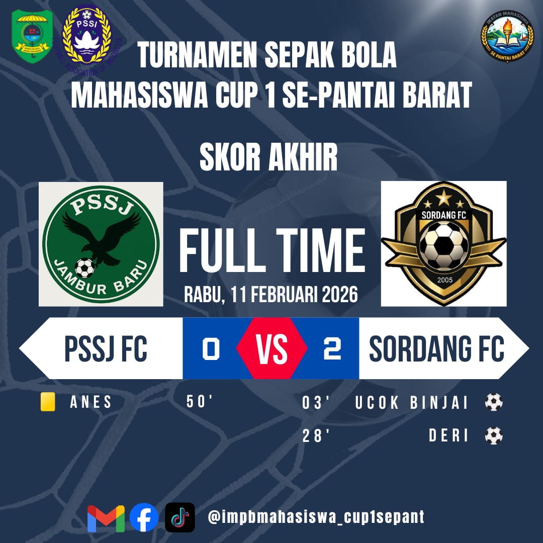 Kemenangan ini menjadi modal berharga bagi Sordang FC untuk melangkah lebih jauh di Turnamen Mahasiswa Cup I yang digelar di Lapangan Hijau Desa Dalan Lidang. Sementara itu, PSSJ FC Jambur Baru harus melakukan evaluasi demi menjaga asa di pertandingan selanjutnya.