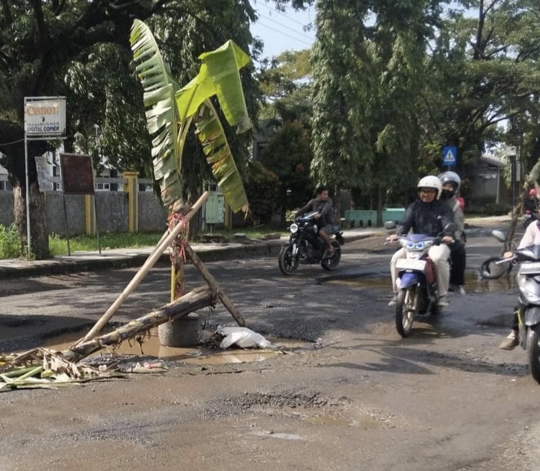 Rizki Pratama, warga yang menggagas aksi tersebut, mengaku prihatin dengan kondisi jalan yang tak kunjung diperbaiki.