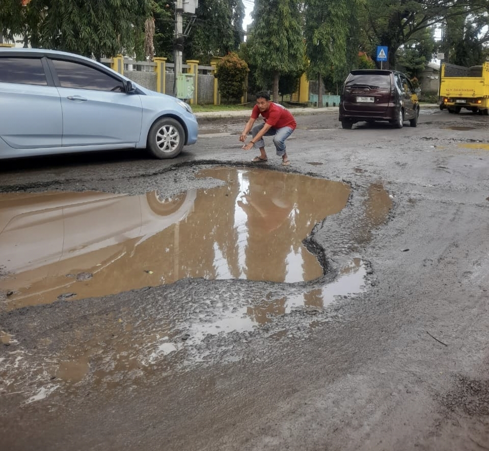 “Ini sudah lama dibiarkan. Kalau hujan, lubangnya tidak kelihatan sama sekali. Banyak pengendara motor yang jatuh. Kami terpaksa menanam pohon pisang supaya ada perhatian dan supaya orang lebih waspada,” ujarnya, Sabtu (28/2/2026).